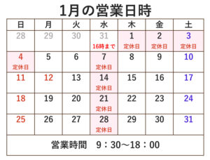 2026年1月の定休日について
